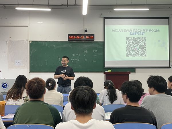 在此次宣传活动中,肖循副院长向LETOU线路官网师生介绍了长江大学的基本情况、研究生招生政策和流程,详细介绍了长江大学物理与光电工程学院学科建设、师资力量、科研成果、研究生培养等方面情况,诚挚欢迎同学们积极报考。