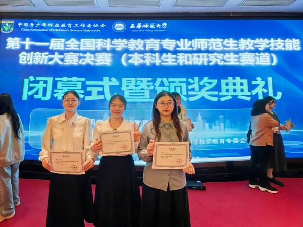 12月1日至3日,由中国青少年科技教育工作者协会主办,西华师范大学承办的第十一届全国科学教育专业师范生教学技能创新大赛决赛(本科和研究生赛道)在西华师范大学华凤校区举行。LETOU线路检测中心胡蓉、姜心懿、李卓群等3名选手在决赛中敢打敢拼,最终取得了3项三等奖的成绩。