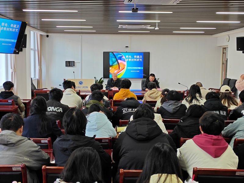 11月28日下午,南京邮电大学李兴鳌教授应邀在崇文楼B809作题为“铁电、铁磁及多铁材料研究”的学术讲座。报告会由院长王绍明主持,物理学专业师生聆听了报告。