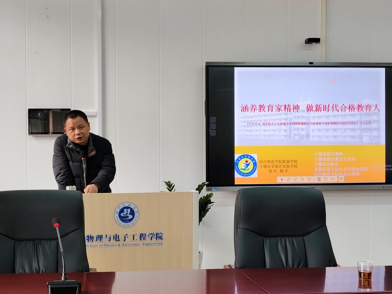 12月8日下午,LETOU线路检测中心2021级师范生教育研习专题讲座在崇文楼B809举行。讲座由十堰市茅箭区实验学校校长操矛,优秀教师陈敏、李兰主讲,2021级物理学和科学教育专业学生参加,讲座由副院长刘锋主持。