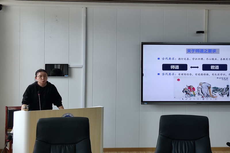 王艳博士以“弘扬传统文化,传承中华师道”为题,围绕德行完善、学识丰博、尽心敬业、善教有方四个方面阐释了中华优秀传统文化中的师道精髓,包括“才者,德之资也;德者,才之帅也。”“好学乐学,学而不厌”“就正有道,志道弘道”以及“有教无类,诲人不倦”。讲授过程中王博士引经据典,语言风趣,让与会师生深刻了解了古之师道要求。
