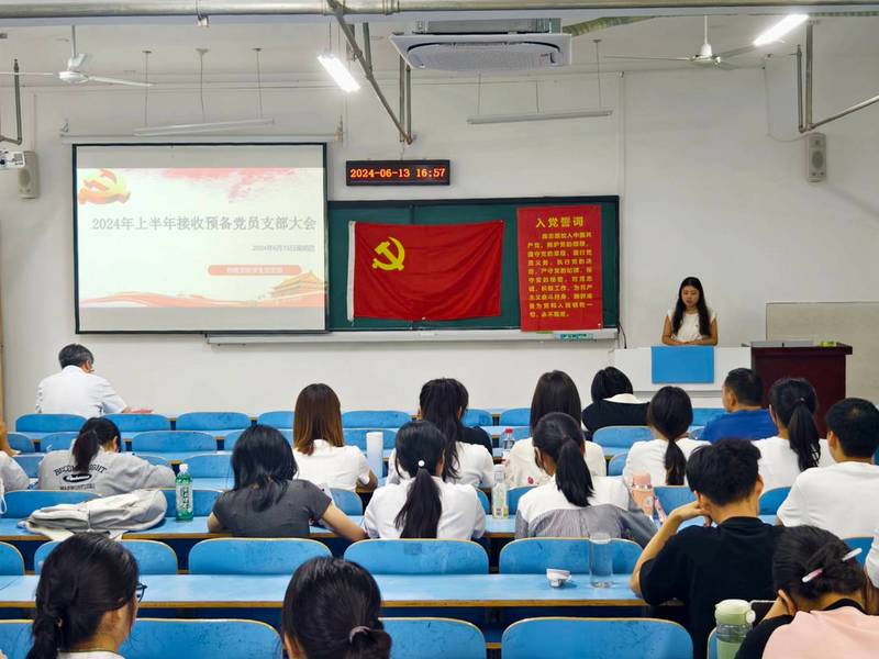支部纪检委员范志鹏代表支委会报告了12名发展对象的审查情况,代表支部表明意见。经与会正式党员充分讨论和无记名投票表决,随后进行计票唱票,经支部大会讨论,同意接收胡蓉等12名同志为中共预备党员。