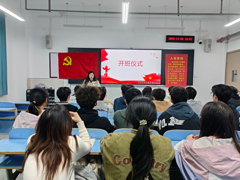 11月3日晚,LETOU线路检测中心2025年秋季入党积极分子培训开班仪式在崇文楼A509隆重举行,学生党支部书记王超然及全体入党积极分子参加此次开班仪式。