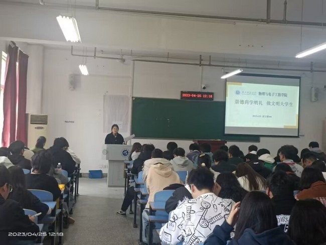 表彰结束后,李朦老师紧密围绕养成良好文明行为习惯的主题,向同学们剖析了校园内一些不符合大学生行为规范要求、不文明礼貌的做法,告诫学生们在校期间不仅要勤奋学习,同时还要注重培养高尚的道德情操、提升自身素养。鼓励同学们在思想文明、举止文明、课堂文明、宿舍文明、就餐文明等不断提高自身素质修养,规范个人行为习惯。