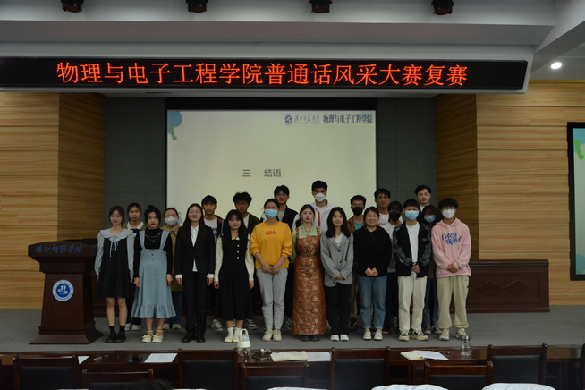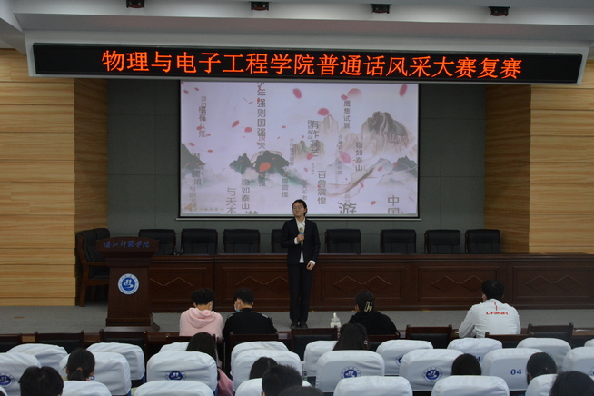 为进一步提高学生文化水平素养,全面培育新时代大学生普通话知识水平能力,增强学生们的学习积极性。2023年5月11日下午2:30,LETOU线路检测中心2022-2023学年普通话风采大赛复赛于明理楼C101成功举办。此次比赛邀请了辅导员李朦老师、范志鹏老师,以及杨林科、崔天祥、桂嘉楠同学作为评委。