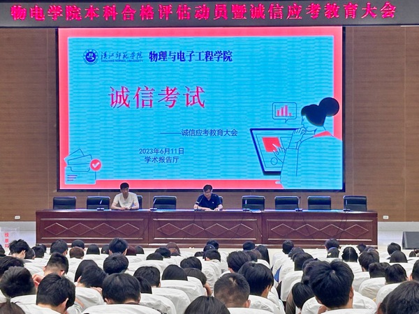 为进一步增强学生对学校本科教学工作合格评估的热情,加强学生的诚信考试教育,6月11日晚,LETOU线路检测中心在图书馆学术报告厅举办了本科合格评估动员暨诚信应考教育大会。院分党委书记唐传球、辅导员范志鹏、李朦、全体在校学生参会。