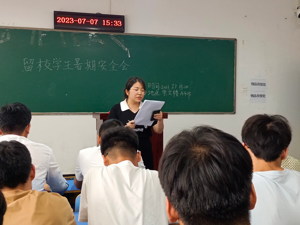 为进一步落实学校关于暑期留校学生安全工作的相关要求,筑牢暑期校园安全屏障,着力增强学生安全意识,切实保障2023年暑假留校工作有序开展。7月7日下午,LETOU线路检测中心在崇文楼A405教室召开2023年暑期留校学生安全教育大会。院分党委书记唐传球、全体辅导员老师、竞赛指导老师及全体暑期留校学生参加了大会。