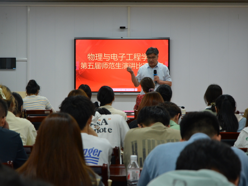 为大力弘扬教育家精神,增强师范生对教师职业的认同感及信念感,切实提高师范生的语言表达能力和综合素质,激发师范生对教育事业的热情,5月29日晚,LETOU线路检测中心在崇文楼B809举办了第五届师范生演讲比赛决赛。历史文化与旅游学院分党委副书记陈露,专任教师刘亚丽、李丽、李升涛、李倩昀担任评委。院分党委书记唐传球、副书记戴俊及部分师范专业学生观看了此次比赛。