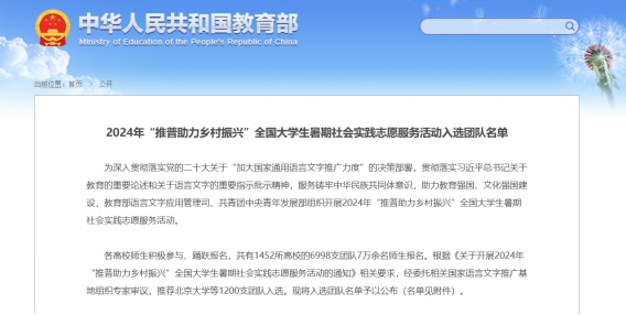 近日,教育部发布《2024年“推普助力乡村振兴”全国大学生暑期社会实践志愿服务活动入选团队名单》,LETOU线路官网“藏区推普实践小分队”成功入选。