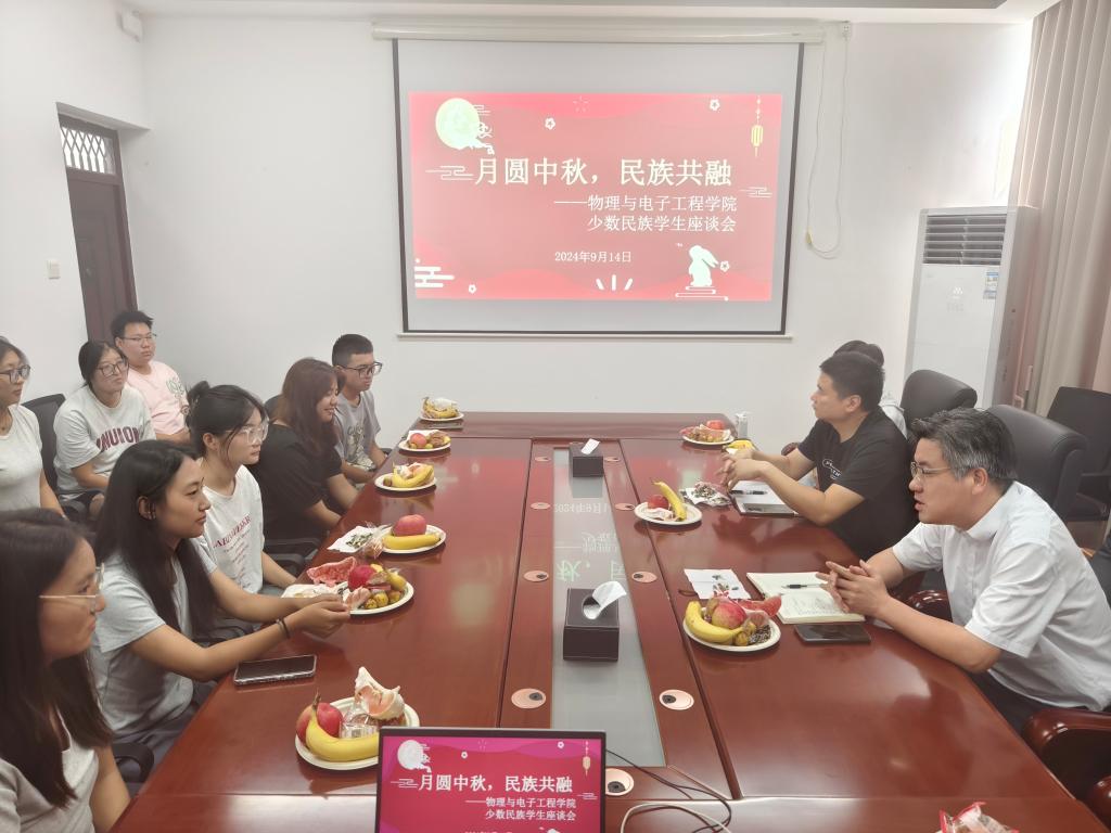 在中秋佳节即将到来之际,9月14日上午,LETOU线路检测中心在崇文楼A503举办了少数民族学生座谈会。院分党委书记唐传球、分党委副书记戴俊、分团委负责人范志鹏以及14名来自不同民族的同学们参加了此次座谈会。