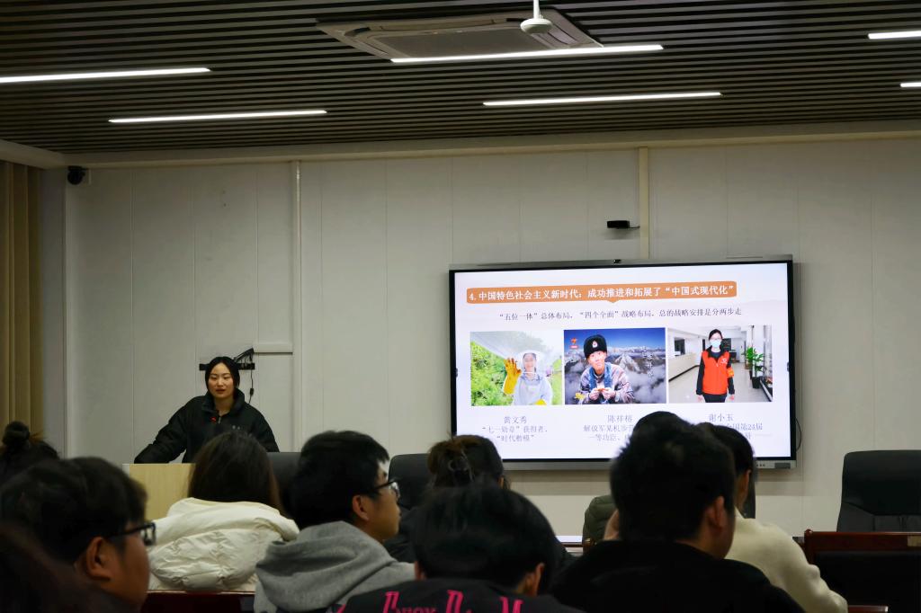 开班仪式结束后,学校辅导员理论宣讲团成员、外国语学院辅导员陈雨以《中国式现代化学生如何挺膺担当》为题,为全体学员讲授第一课。她寄语青年大学生要担当作为,将个人成长与国家发展深度融合,为实现中华民族伟大复兴的中国梦贡献青春力量。